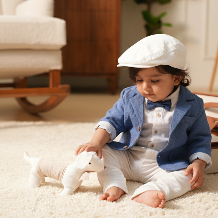The "Firsts" are so important, and when its your little boy's first birthday, it has to be very special. Thoughtfully curated trousseau for the special day packed in a signature First Feather gift box. Ideal for gifting as occasion wear!